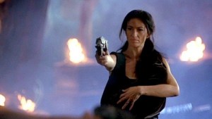 Aeryn Sun of the Farscape series gives birth while the crew of her ship holds off attack, then charges out, gun in one hand, her newborn held firmly to her with the other.